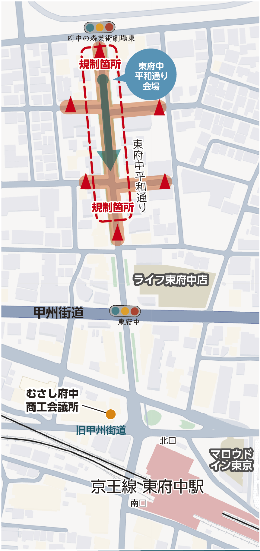 | 東府中平和通り会場 | 10mX70m 流し踊り会場(スピーカー固定) |