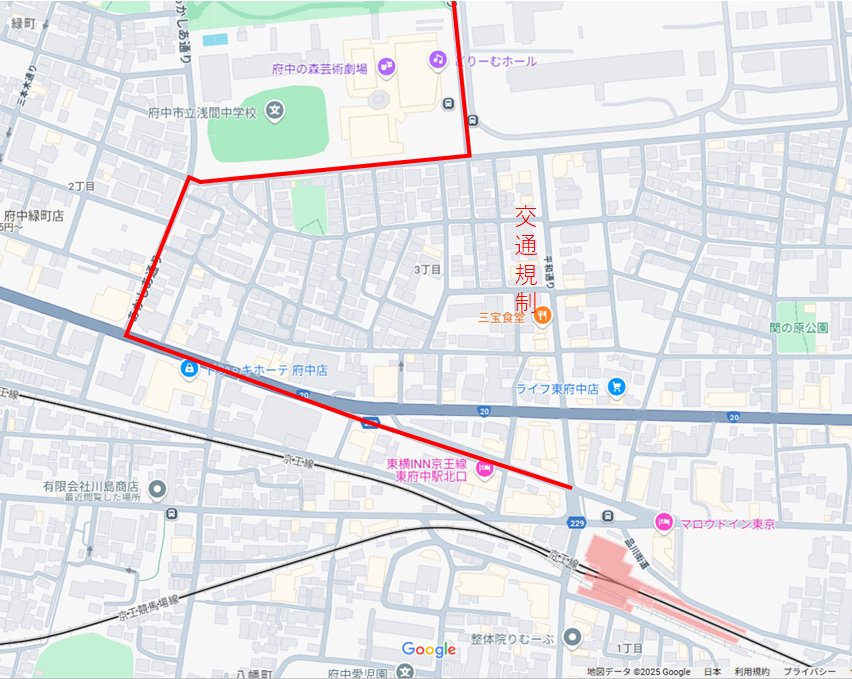 8/23(土)10:00~17:00は東府中平和通りが通行止めのため、ちゅうバスが下図の通り迂回します。